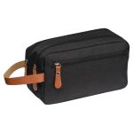 Handy cosmetic bag made of 300D polyester with PU hand strap, mesh compartments inside and a lockable front compartment. Your logo will be printed on the front compartment.