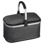 Handy polyester shopping basket with cooling function and a foldable aluminium carrying handle. The basket is easy to fold and has a carrying capacity of 15kg. Your logo will be printed in the middle on one side.