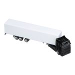 Miniature truck with metal driver’s cab and plastic trailer. The white surface of the trailer is ideal for a full-surface digital print.