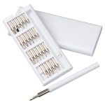 Screwdriver set with 24 magnetic precision slotted and cross bits made of stainless steel and holder in a plastic packaging to slide on. Your advertising will be printed on the box.