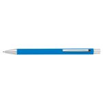 Slim rubberized metal retractable ball pen with silver applications and blue-writing refill. Your advertising willl be printed to the right of the clip.